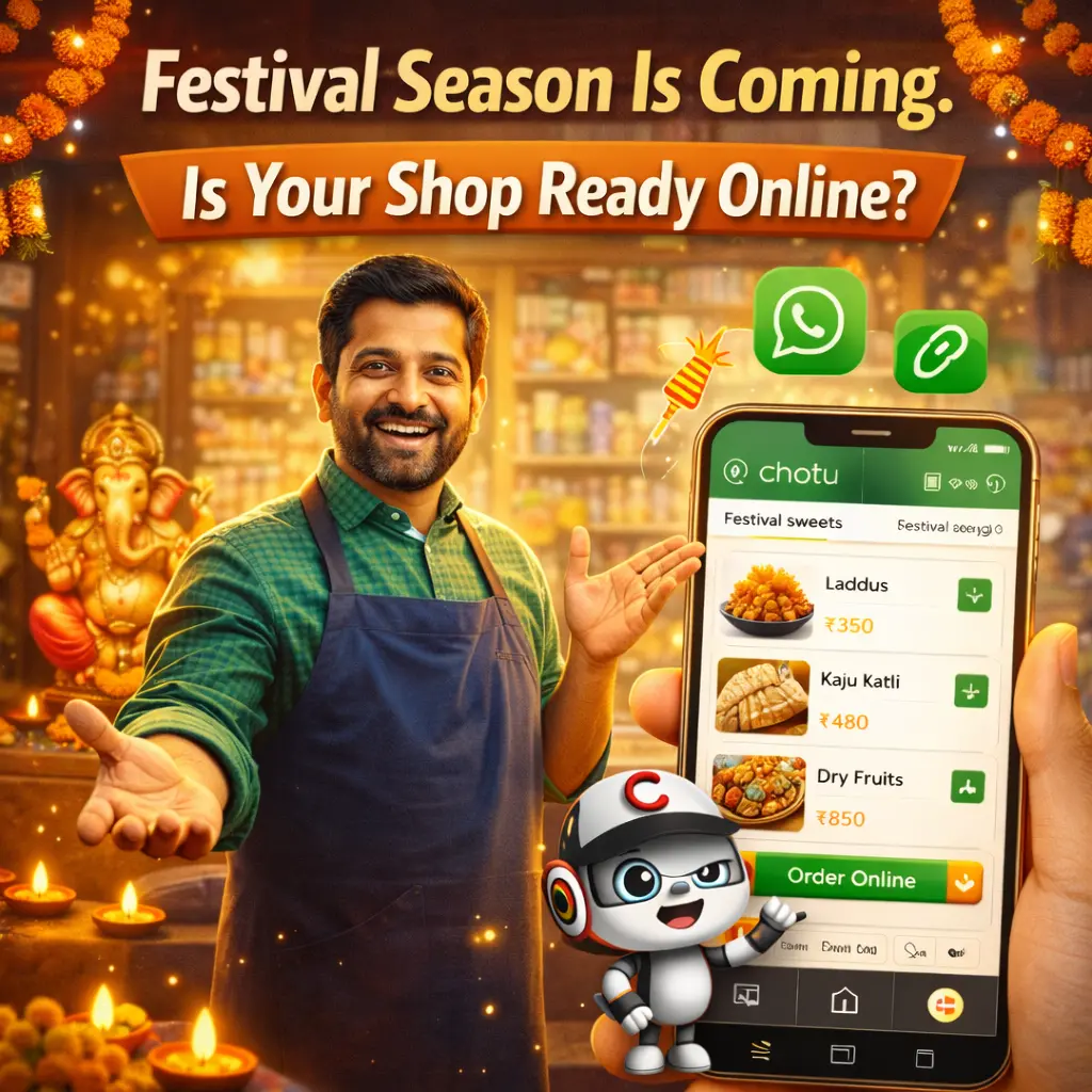 chotu.com takes zero commission on any order placed through your WhatsApp store. The full payment goes from your customer directly to you – in cash, UPI, or whatever you prefer. The platform earns through optional premium tools, not by taxing your every transaction.