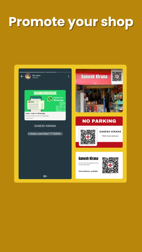 • Share shop link on WhatsApp Status, Groups, Instagram, YouTube, etc.