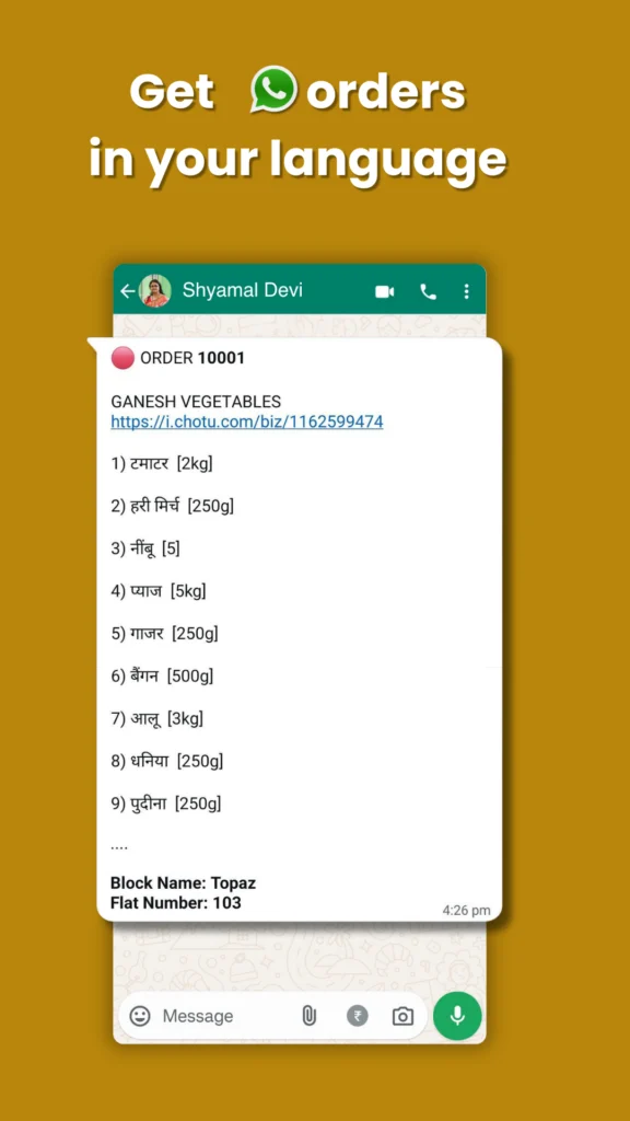 Namaste. I am chotu, your friendly shopboy. I make ordering from your shop simple on WhatsApp.